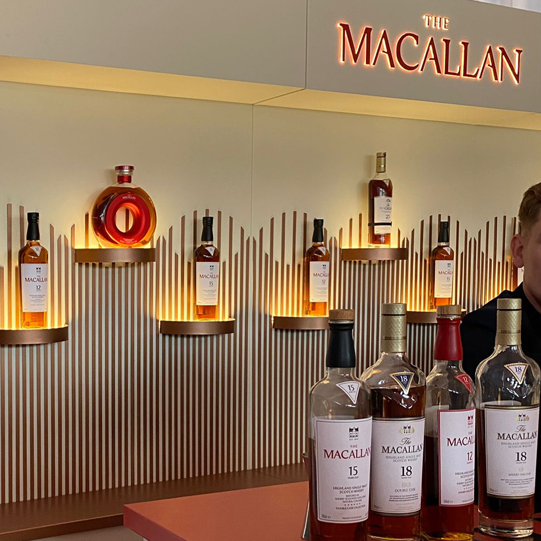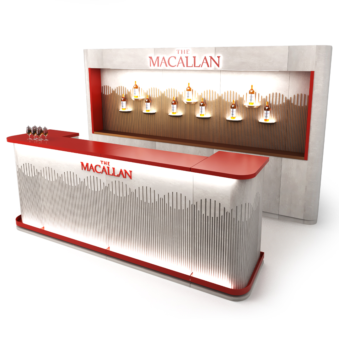 Na potrzeby marki The Macallan, synonimu elegancji i wyśmienitej whisky, zaprojektowaliśmy i zrealizowaliśmy bar eventowy, który w pełni oddaje luksusowy charakter brandu. To połączenie nowoczesnej estetyki z najwyższą dbałością o detal.